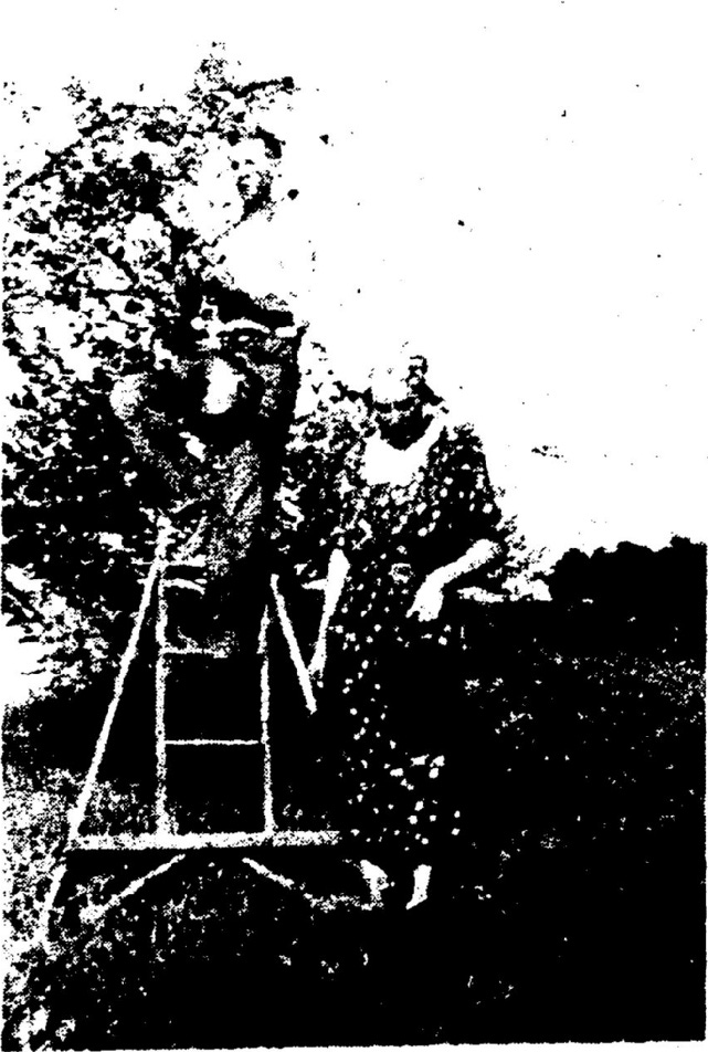 The author, John Enigl, and his aunt, Ingo Bavry Mueller, hand picking cherries in 1939.