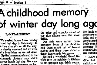 “A childhood memory of winter day long ago” from the December 14, 1972 Door County Advocate