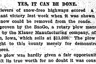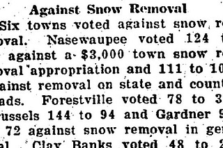 “Against Snow Removal” from the March 5, 1929 Door County Advocate