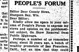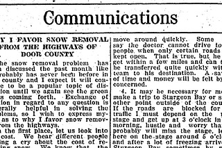 Letter “On Snow Removal from Public Highways” from the February 28, 1929 Door County News